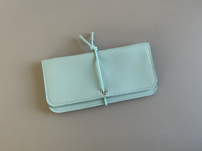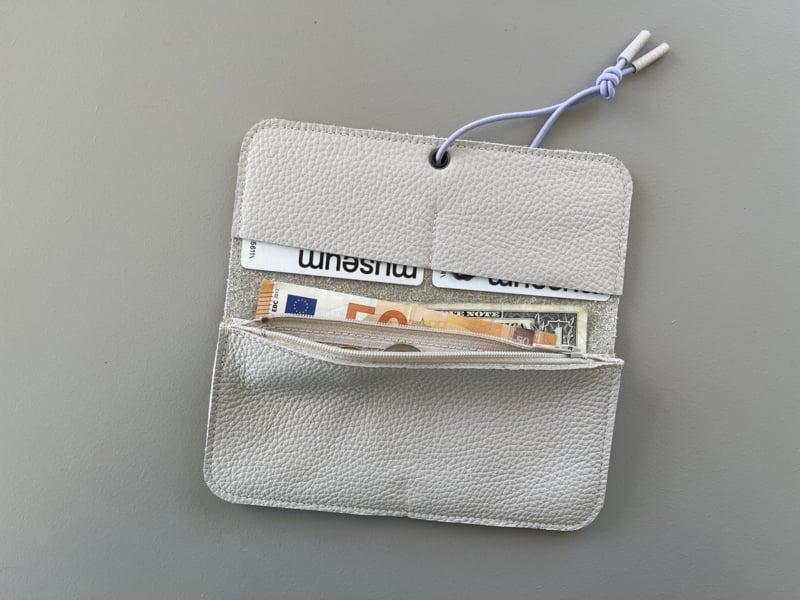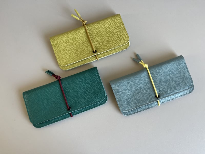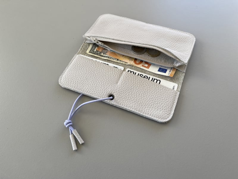 KNOT wallet wide is a minimalist and elegant wallet with a simple elastic cord closure.