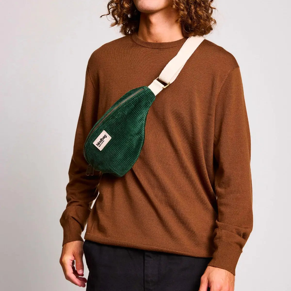 Its GOTS-certified organic corduroy and plain lining allow you to keep your essentials safe. With its adjustable strap, you can wear it over a thick coat in winter or a light t-shirt in summer.