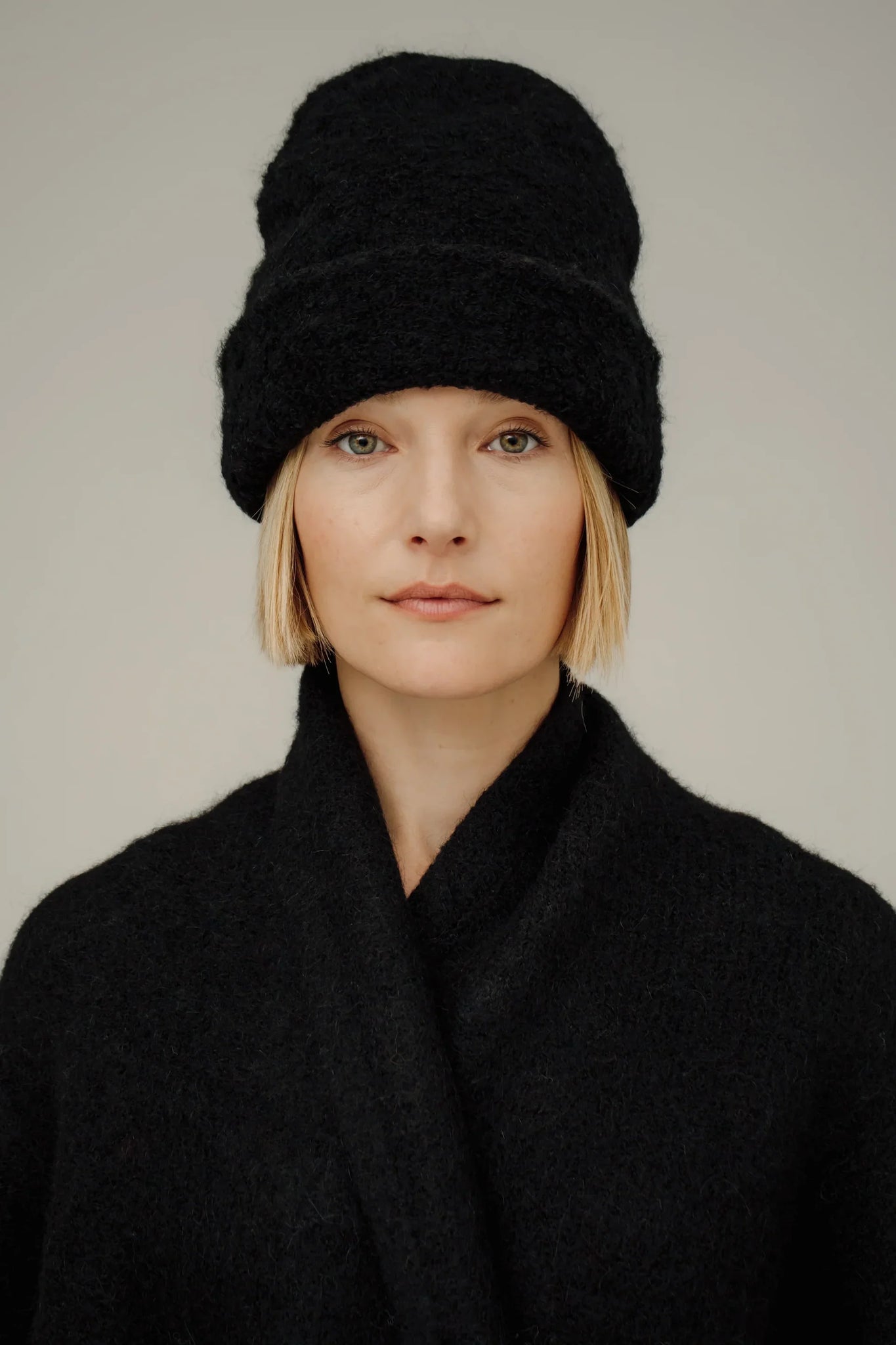 The Remi Beanie is a standout hat with a thick turned-up cuff.