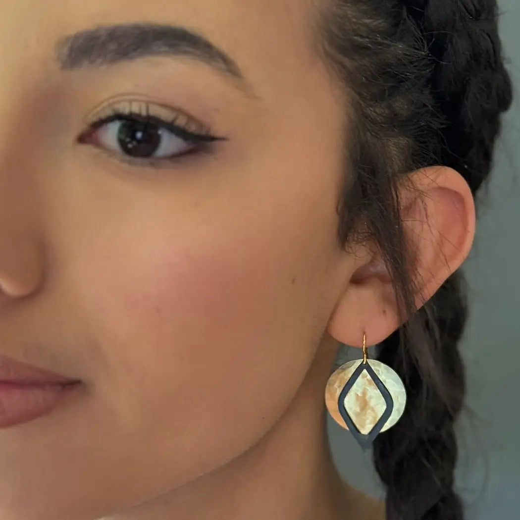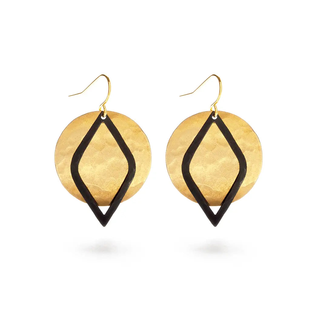 These beautiful earrings are made of hammered brass with an anti-tarnish coating