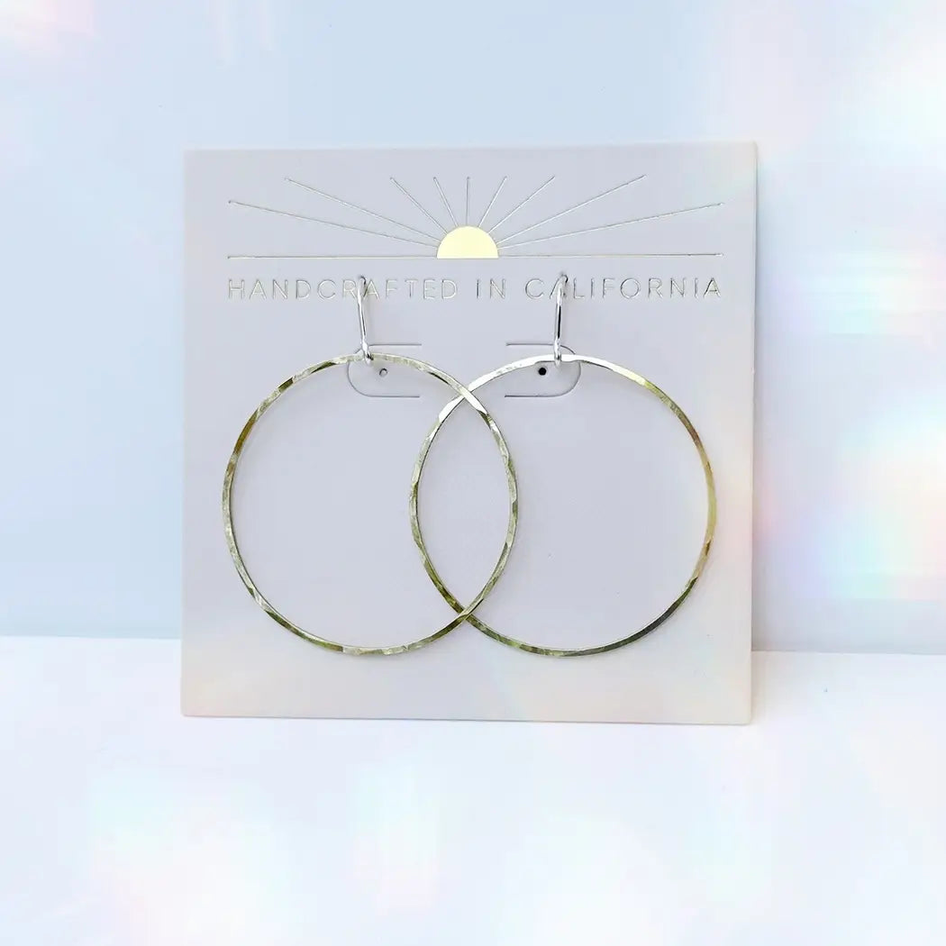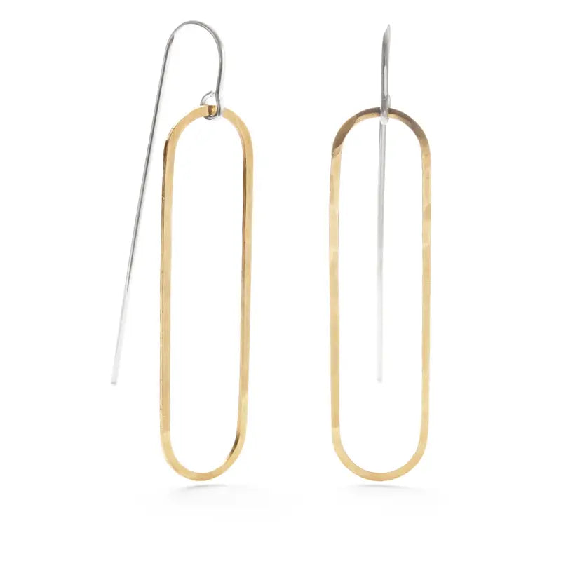 These classic threader earrings are made of hammered brass and sterling silver. A simple, classy addition to any outfit. Choose from Circle or Oval shapes.