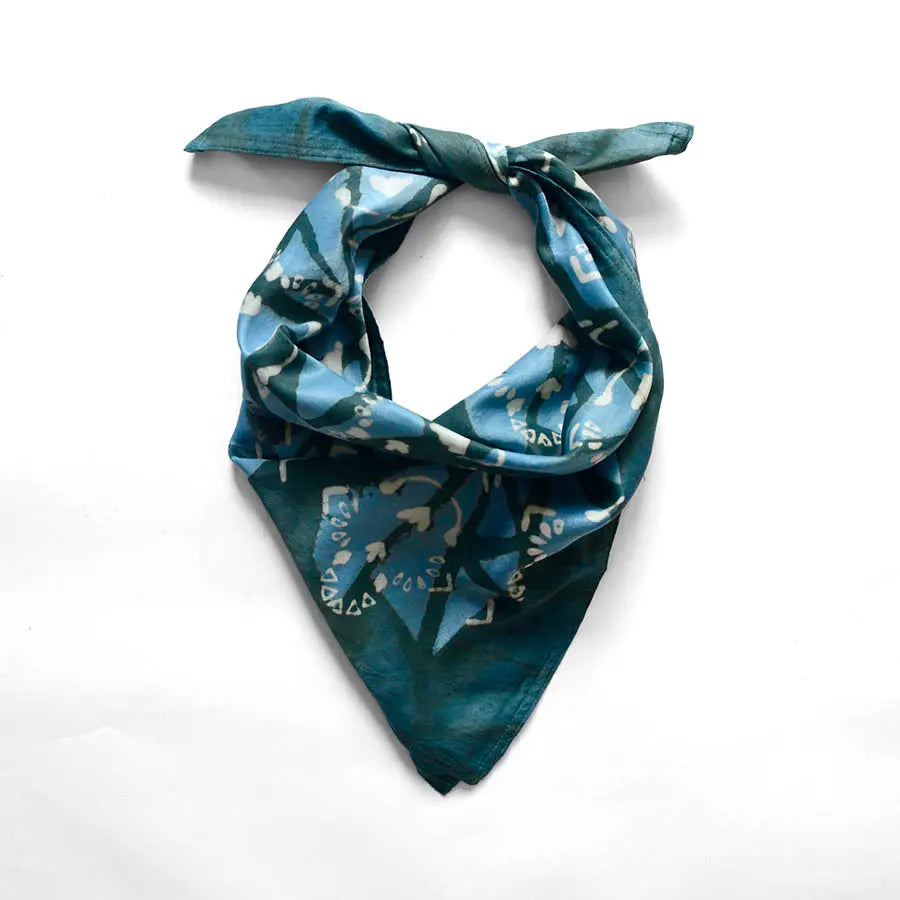Naturally dyed and lightweight, this bandana is easy to wear and endlessly versatile—style it around the neck, tie it in your hair, or add it to a bag for a soft pop of pattern.