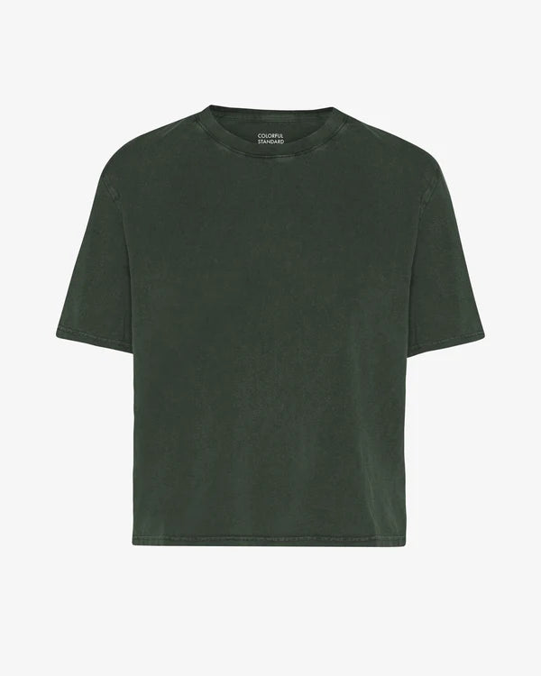 The Organic boxy cropped tee is made with premium materials and attention to detail. It is designed to elevate your everyday look with its modern silhouette and flattering fit. The boxy cut of this tee offers a relaxed yet structured shape that drapes beautifully on the body, providing both comfort and effortless sophistication. The cropped length lays comfortably just on the hip, making it the perfect choice for pairing with high-waisted jeans, skirts, or shorts for a modern style that's ready for any occasion.