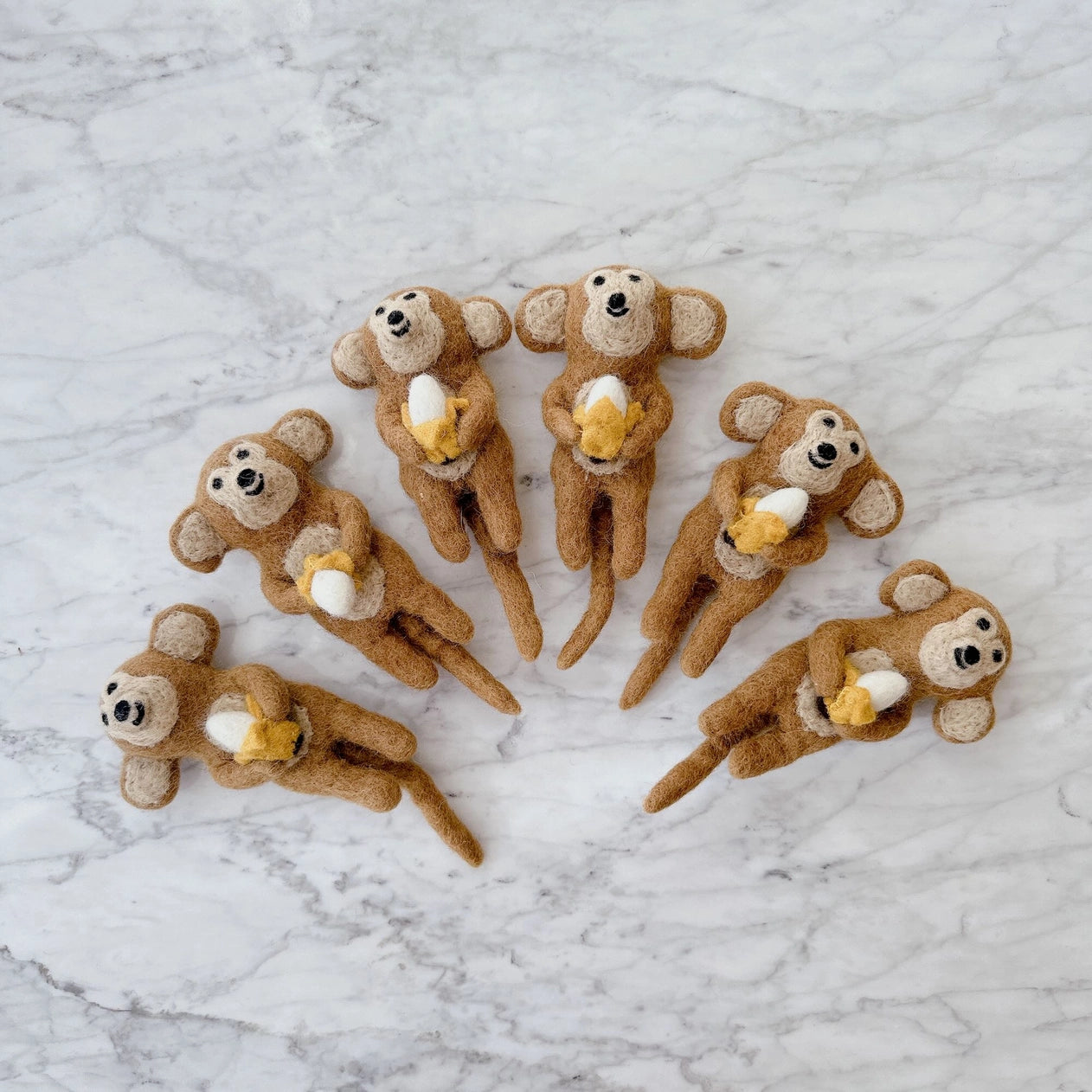 This cheeky and cheerful monkey finger puppet has a big smile and is holding a freshly peeled banana!