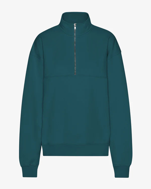 Constructed from premium 100% organic cotton, this unisex quarter zip sweatshirt offers all the things you would expect in a sweatshirt, plus a cozy mid length collar and the added comfort of an oversized fit with a wider chest for ease of movement.