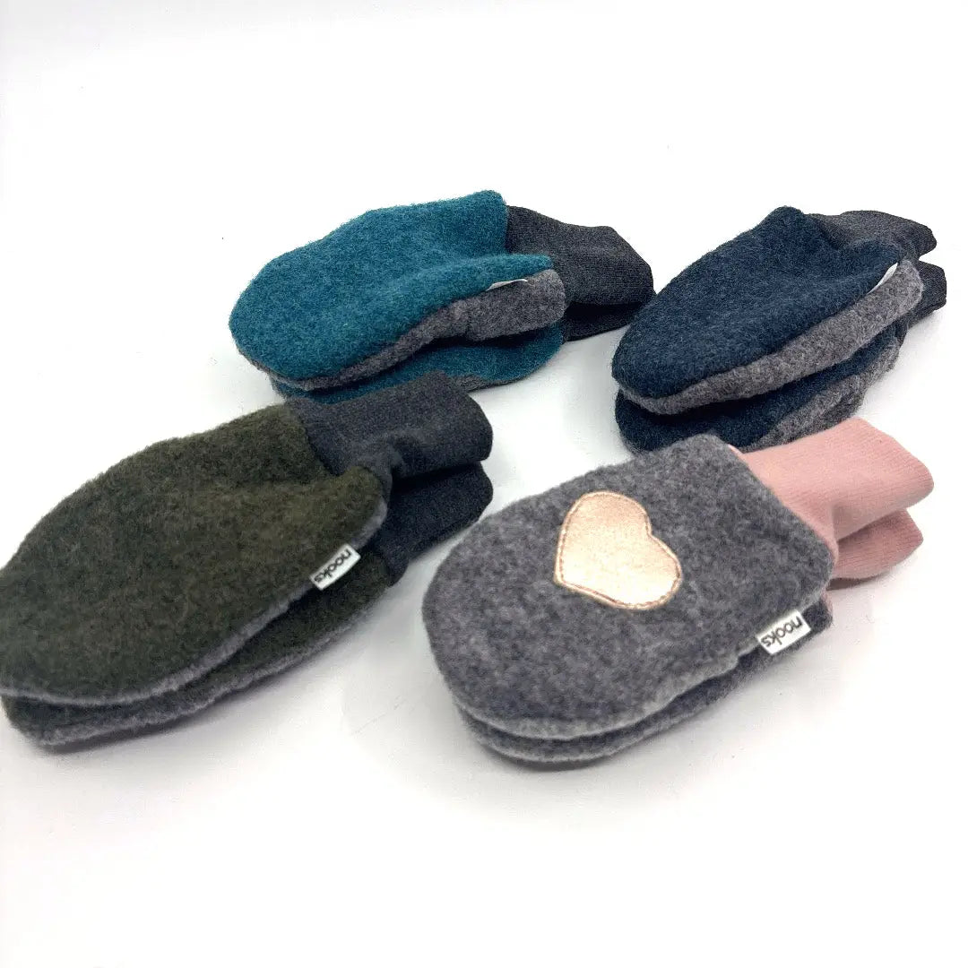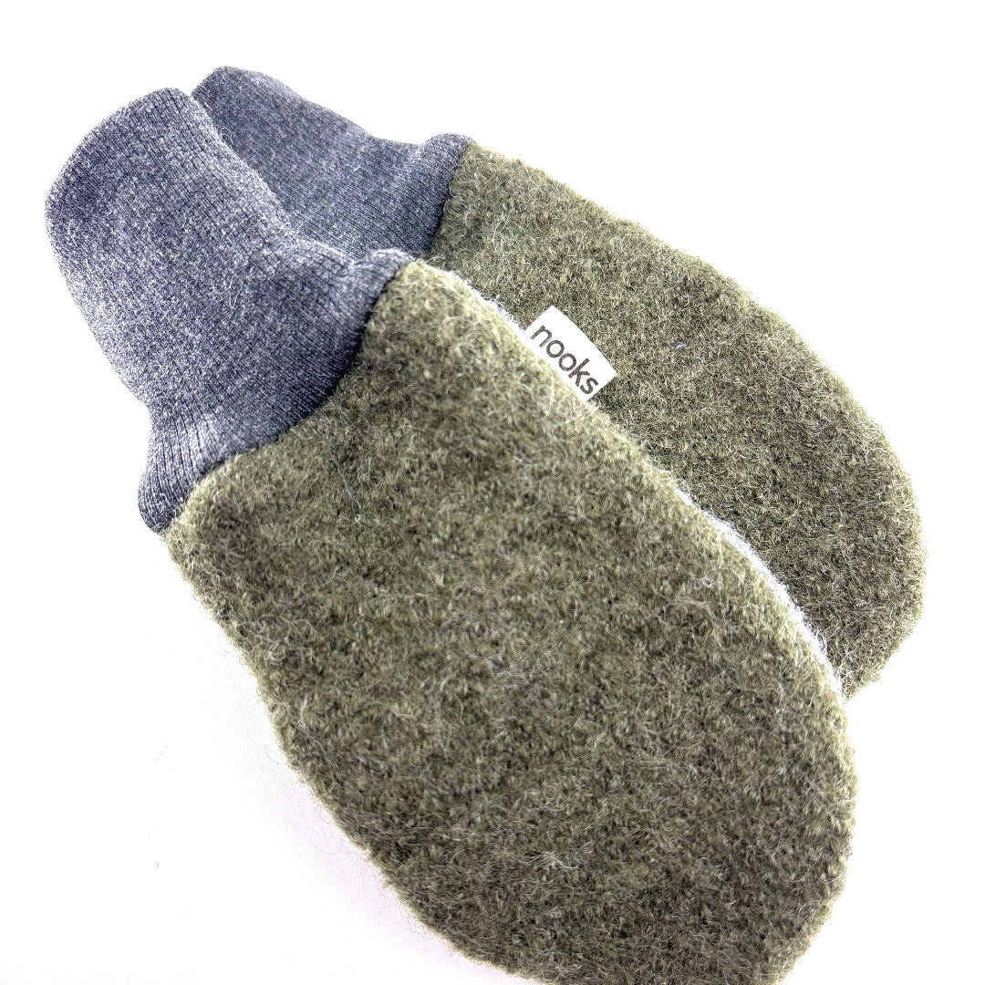 These cozy mittens are made from boiled wool and are lined with a bamboo/merino fleece for warmth and softness.