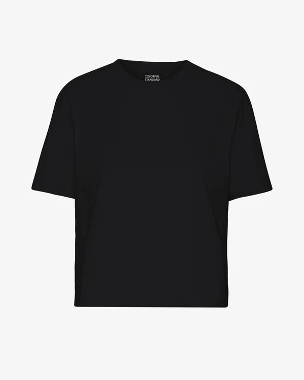 The Organic boxy cropped tee is made with premium materials and attention to detail. It is designed to elevate your everyday look with its modern silhouette and flattering fit. The boxy cut of this tee offers a relaxed yet structured shape that drapes beautifully on the body, providing both comfort and effortless sophistication. The cropped length lays comfortably just on the hip, making it the perfect choice for pairing with high-waisted jeans, skirts, or shorts for a modern style that's ready for any occasion.