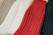 Made from a soft wool cotton blend, these cable patterned socks are cozy, insulating and durable.