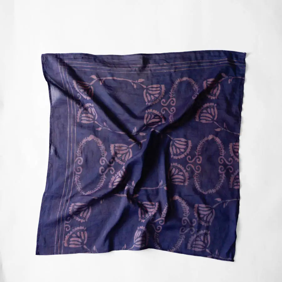 Naturally dyed and lightweight, this bandana is easy to wear and endlessly versatile—style it around the neck, tie it in your hair, or add it to a bag for a soft pop of pattern.