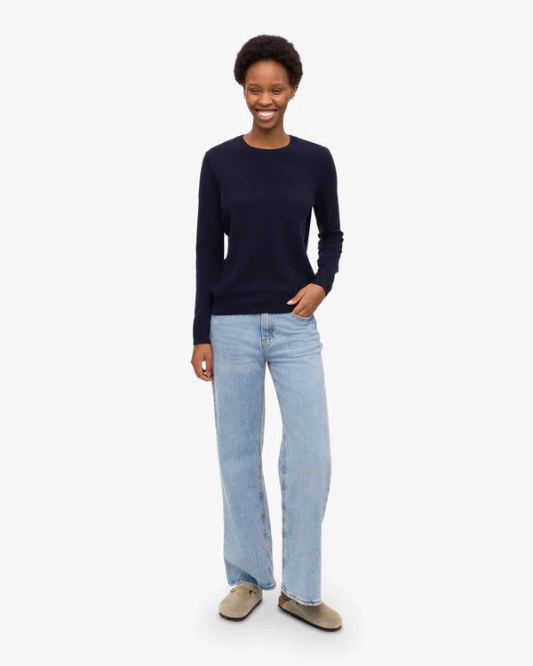This Merino Wool Crew Sweater is lightweight and knitted with 100% recycled wool fibers. It provides natural breathability and temperature-regulation for year-round comfort. Features are a classic crew neckline, slim fit and ribbed cuffs and hem.