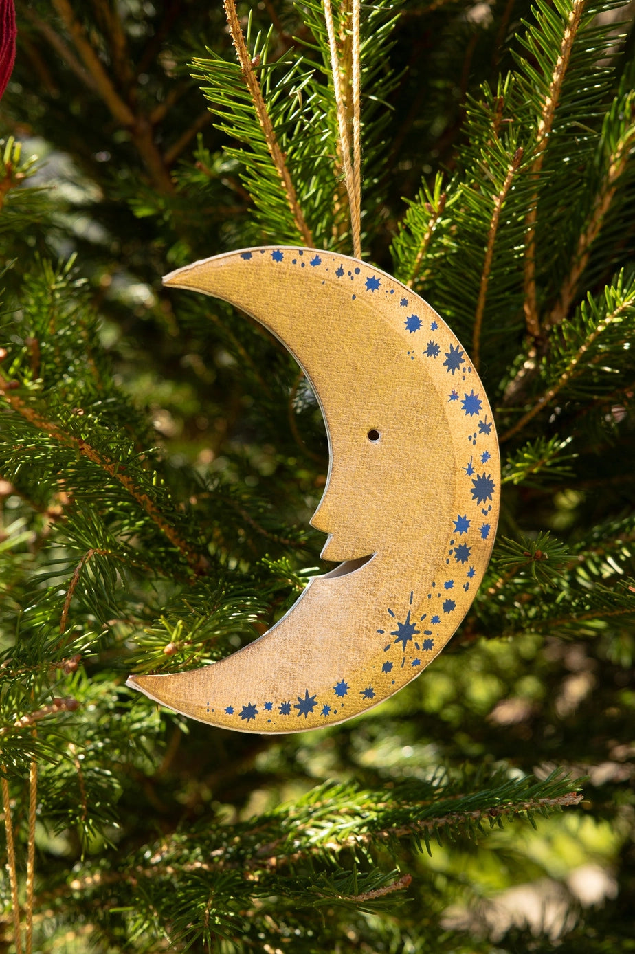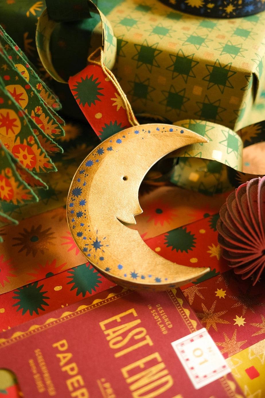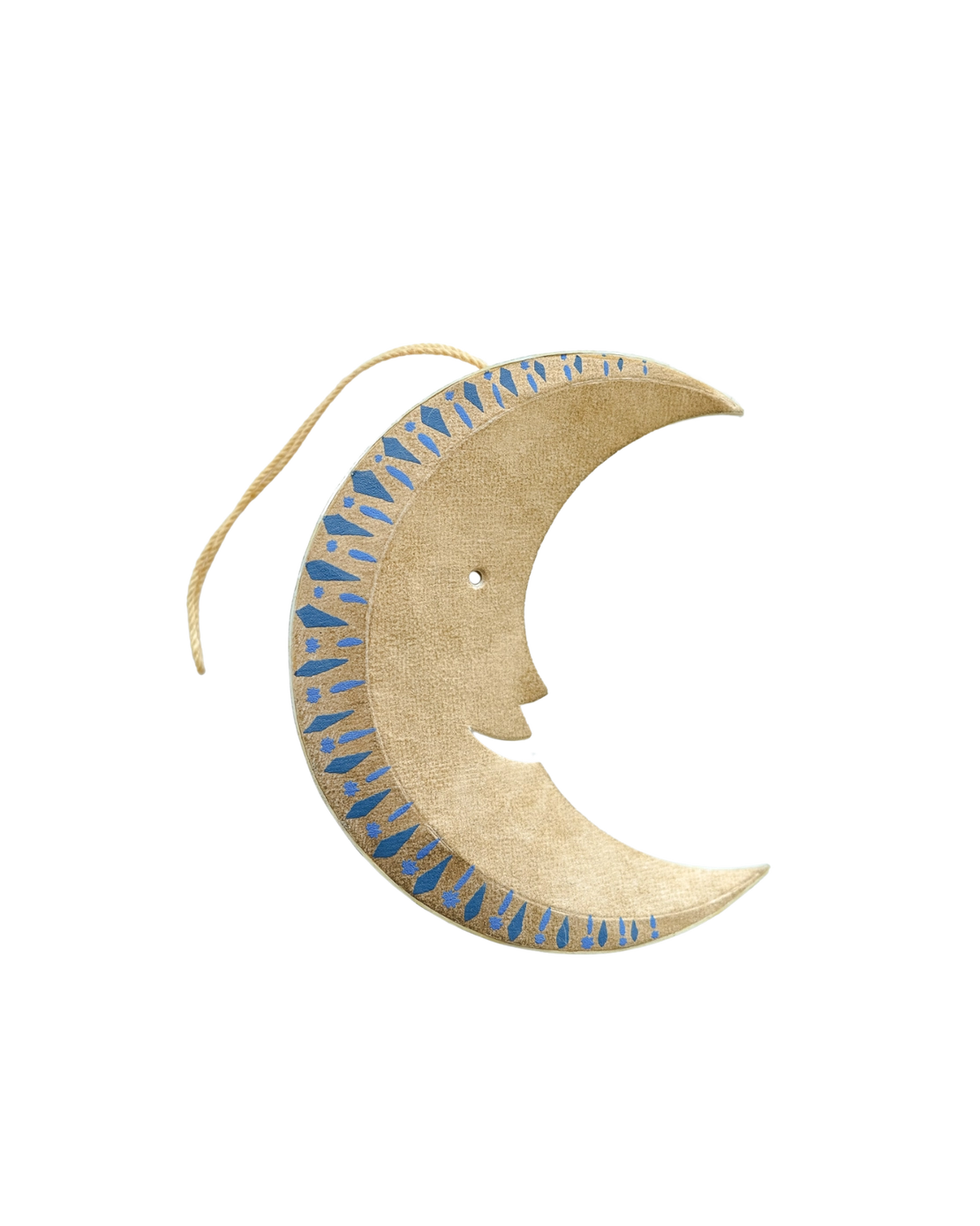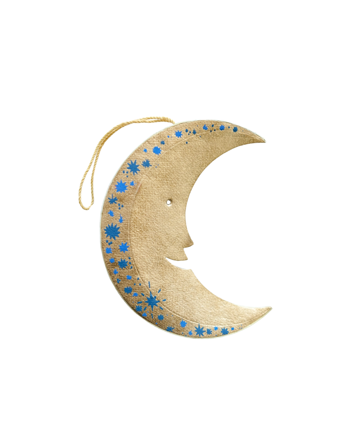 These Man on the Moon screen printed board ornaments are made sustainably made from 100% recycled paper and are perfect for adding a touch of whimsy to any room. They come with a 10cm cotton loop to securely hang it wherever you would like. Durable and sturdy.